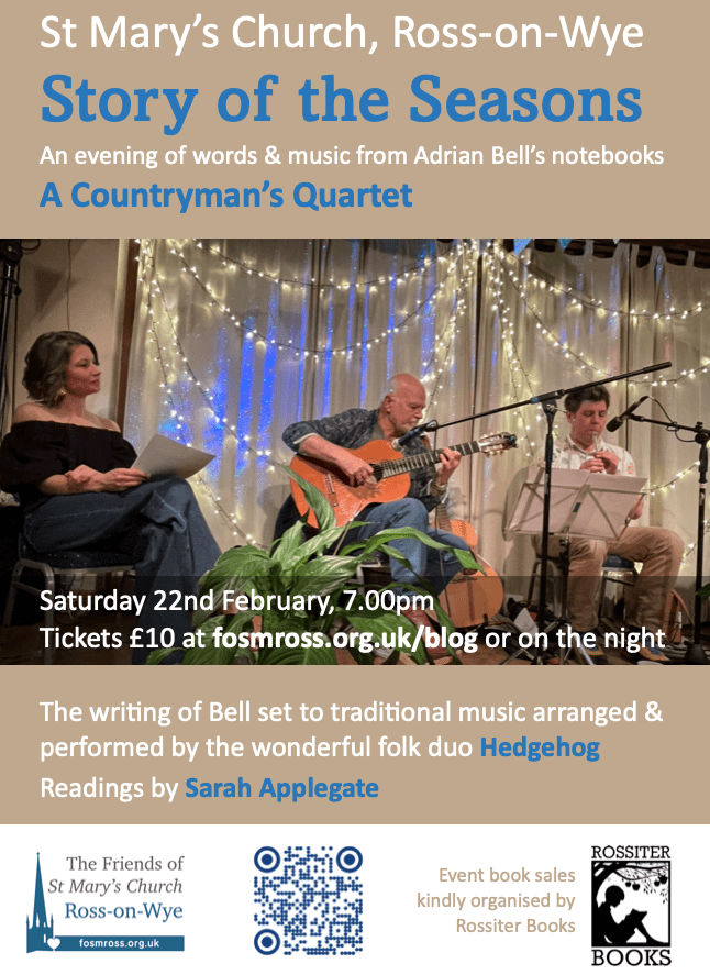 The final volume of Adrian Bell’s quartet of notebooks has recently been published. This concert celebrates the conclusion of this publication and there’s an opportunity to buy any or all of the books at the event via Rossiter Books.